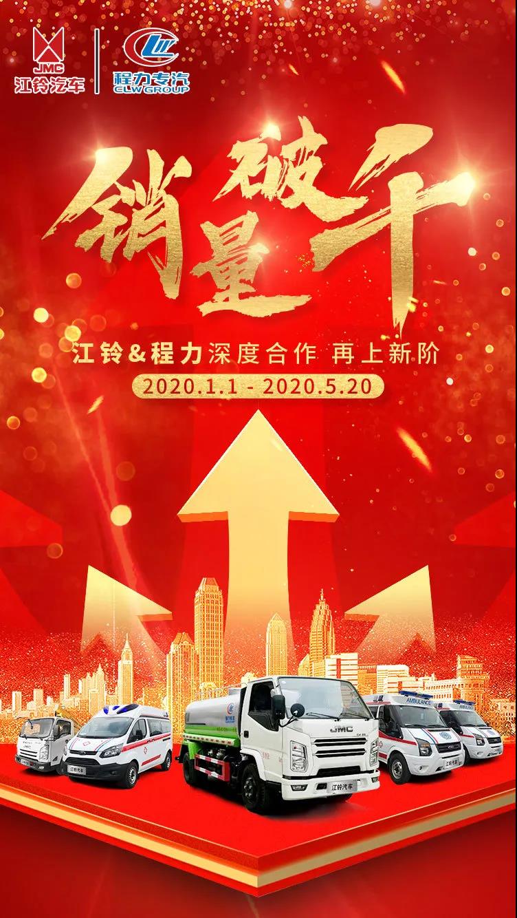 自2019年8月19日,江鈴汽車股份有限公司與程力汽車集團股份有限公司在南昌簽訂直供協議以來,僅2019年直供銷售量就達到584輛。2020年更是勁銷不止,不到兩個季度便銷量破千,完成2020年度銷售目標的58.8%(目標1700臺),全年預計完成2000臺以上。