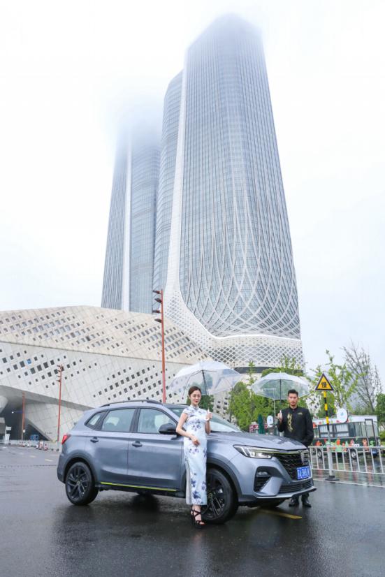 活動當天也算是有點詩情畫意,下起了小雨,很符合這種國風啊,復古的調調的。巡游的RX5 PLUS一溜銀灰色,非常有氣場的感覺,我自己也是選的這個色調。