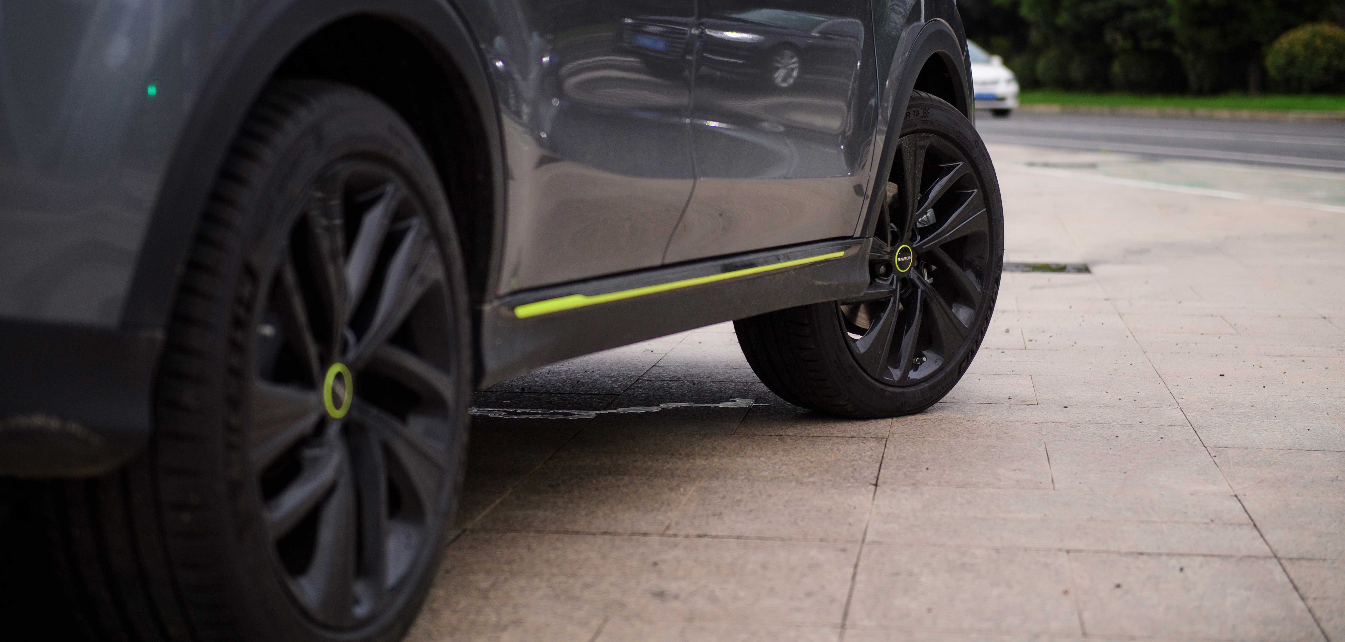 19寸的輪轂就比普通的SUV?上了好多,看上去就?那種跑?穩又快的感覺!米其林PS4輪胎,?輻雙色精輪轂,簡約?氣。