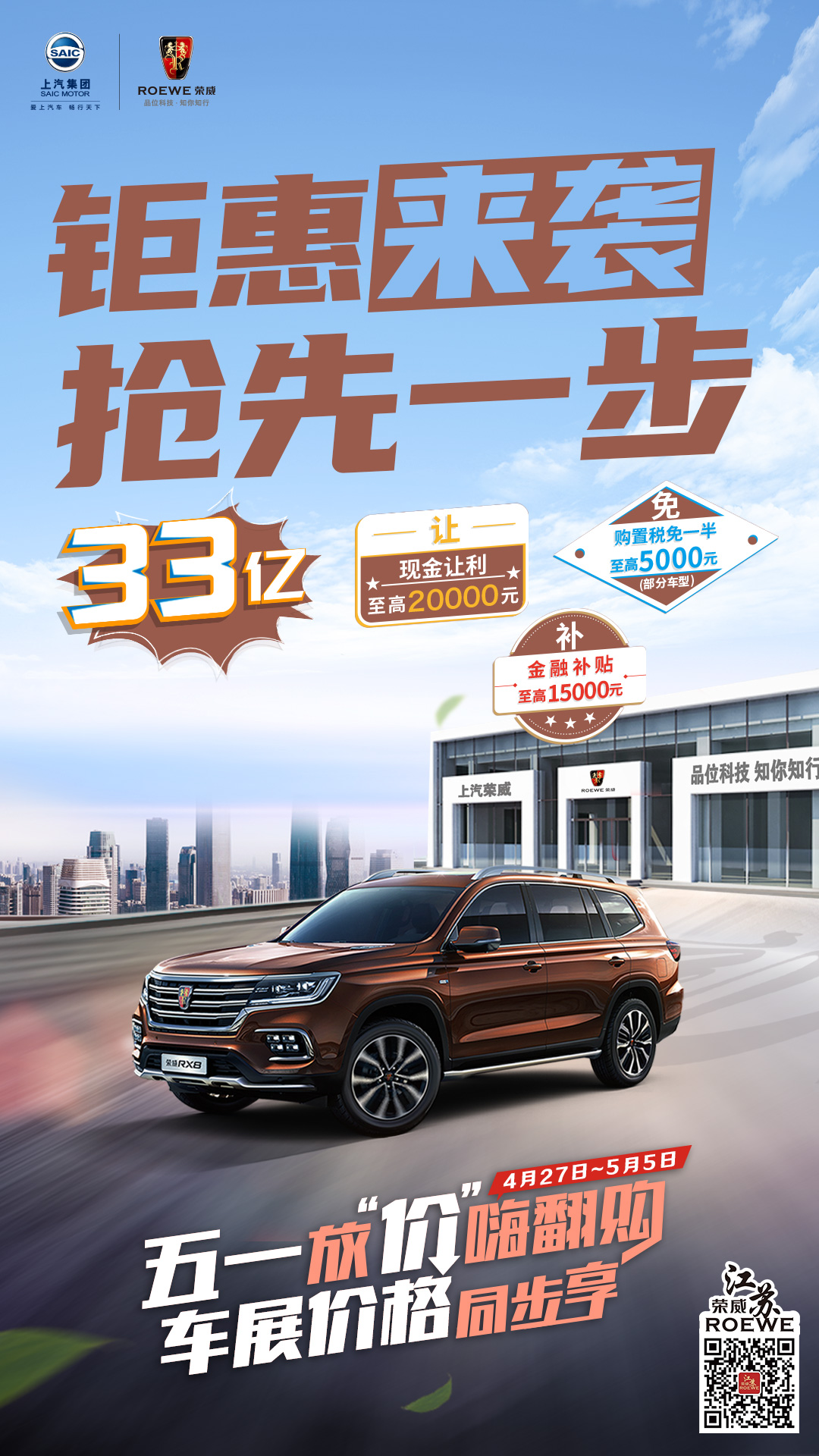 活動(dòng)當(dāng)天置換榮威任意車型,可享高達(dá)6000元的置換補(bǔ)貼!