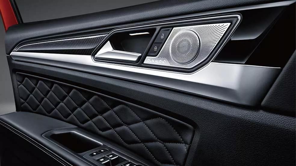 全新途昂X還有一個亮點是帶7.1聲道的丹拿音響,低音下潛非常深,力度也很足,在10.25寸液晶儀表和9.2英寸中控大屏以及環繞式情境氛圍燈的渲染下,整個視聽體驗一流。當然,這套丹拿音響的表現這么優秀,其中也有VSG雙層靜音玻璃很大一份功勞,只有在靜謐性好的車廂內,才能體現出音響實力。