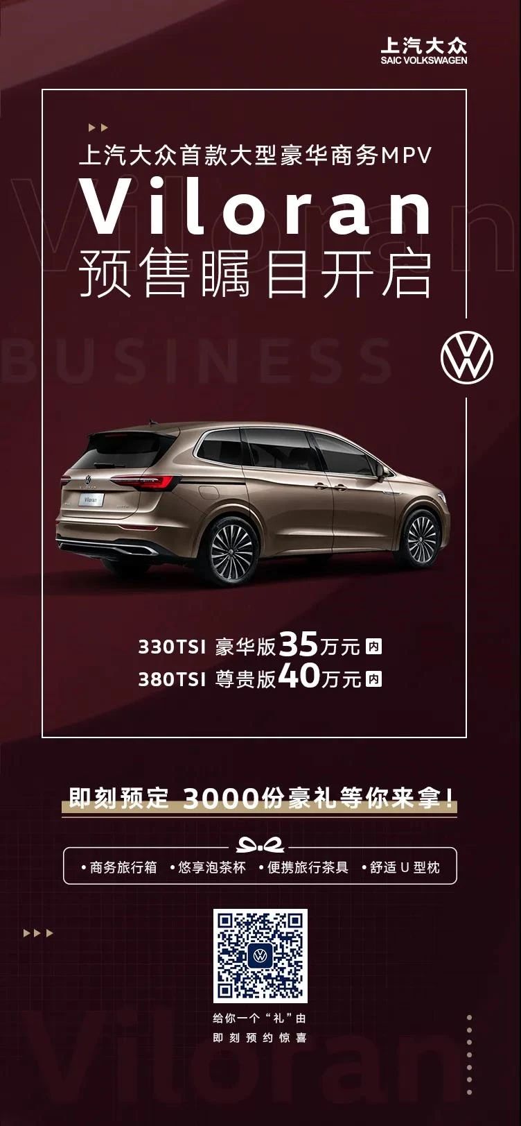 Viloran集空間、舒享、尊貴、行政于一身,劍指豪華商務MPV市場,把握每一寸細節,讓每一次出行都無比出眾,重塑商務新典范!現在掃碼留資即可參與抽獎,贏拉桿箱、旅行茶具等好禮,心動不如行動!